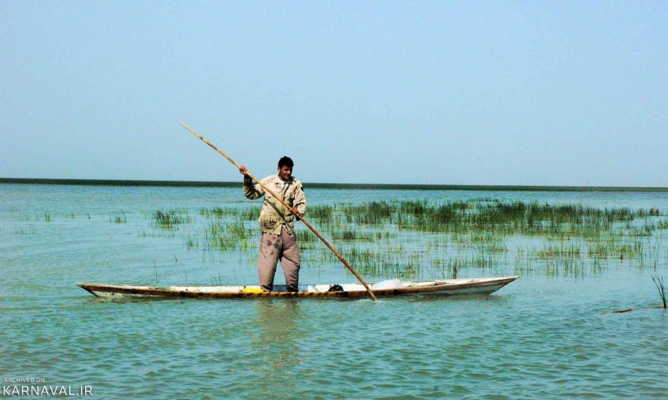 Sarakhiyeh residents prefer to use the traditional boats rather than motorboats to maintain the tranquillity of the village and avoid disturbing the many species of migratory birds and water buffaloes that graze in the waters there, with tourists also encouraged to use this traditional transport method or enjoy exploring the dry land areas on foot.