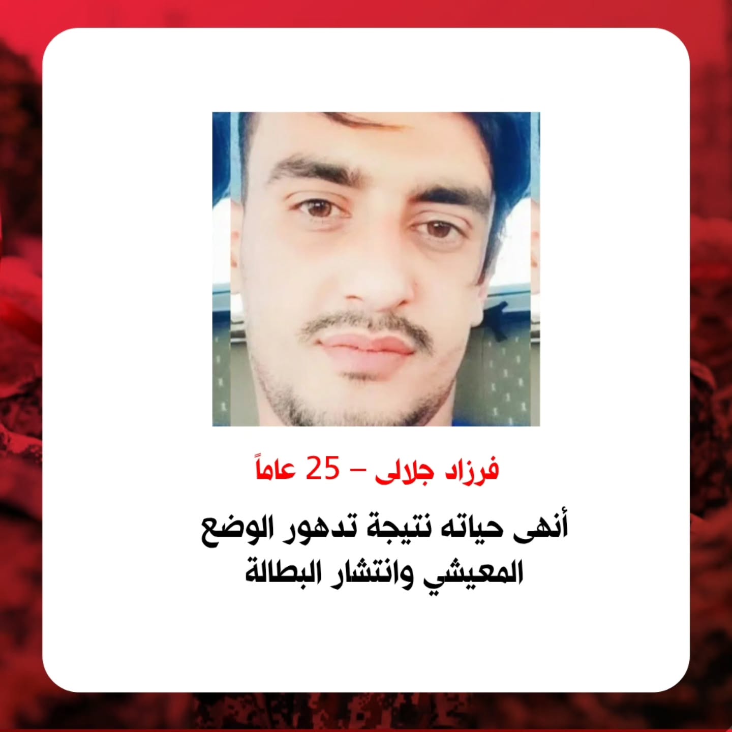 واستمرارا لوتيرة معدلات الانتحار التصاعدية شهد عام 2025 ارتفاعا ملحوظا على هذا الصعيد. و تُعزى معظم الحالات إلى البطالة ولاسيما تسريحات العمال في الشركات الصناعية. ففي 9سبتمبر/أيلول 2025 (18 شهريور 1404)، انتحر “محمد شاوردي”، وهو عامل عربي أحوازي من مدينة الفلاحية، بسبب الضغوط الاقتصادية والتمييز الوظيفي. انتحار “محمد شاوردي” تسبب في احتجاجات عمالية لم يستطع الإعلام إيراني تجاهلها.